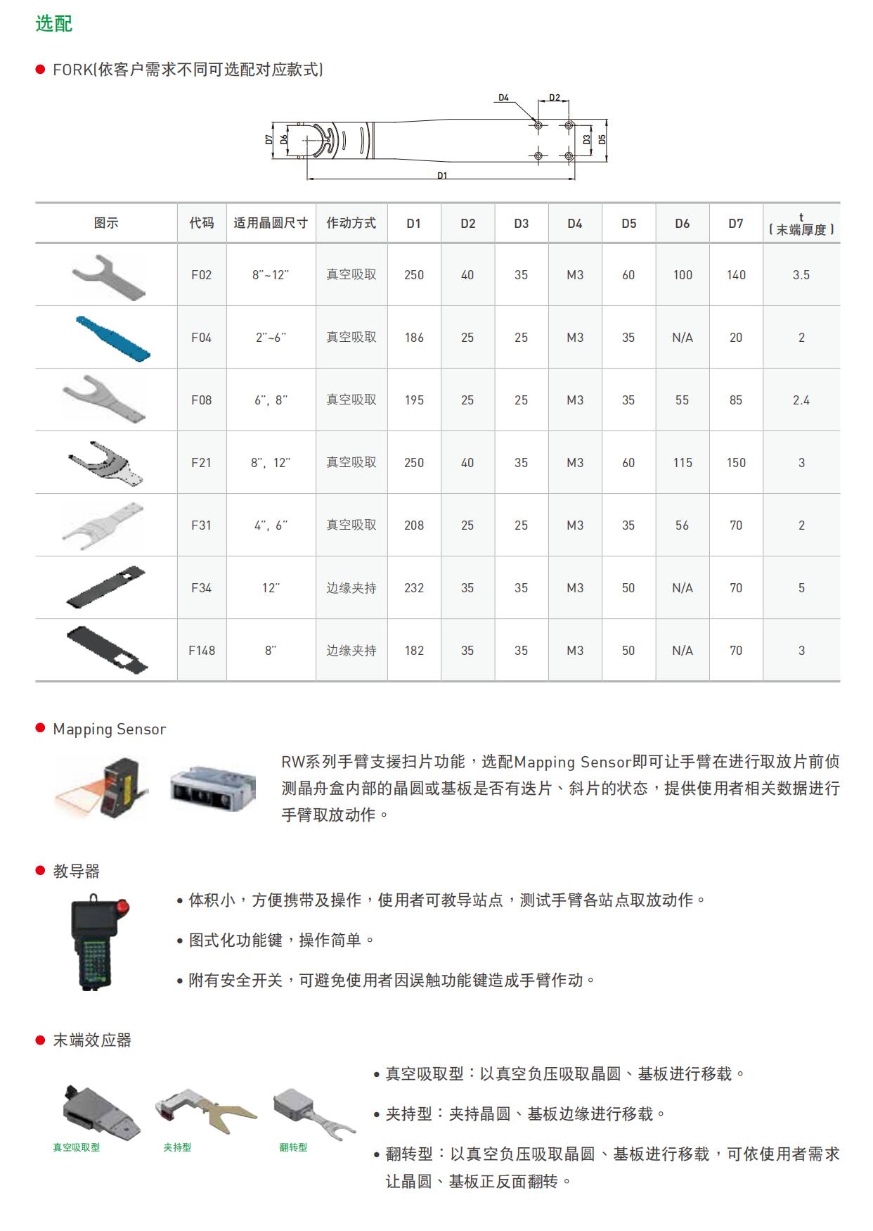 适用于半导体产业(晶圆取放)、光电产业(小型面板、小型太阳能板)、LED产业(蓝宝石基板、胶环)等取放设备。